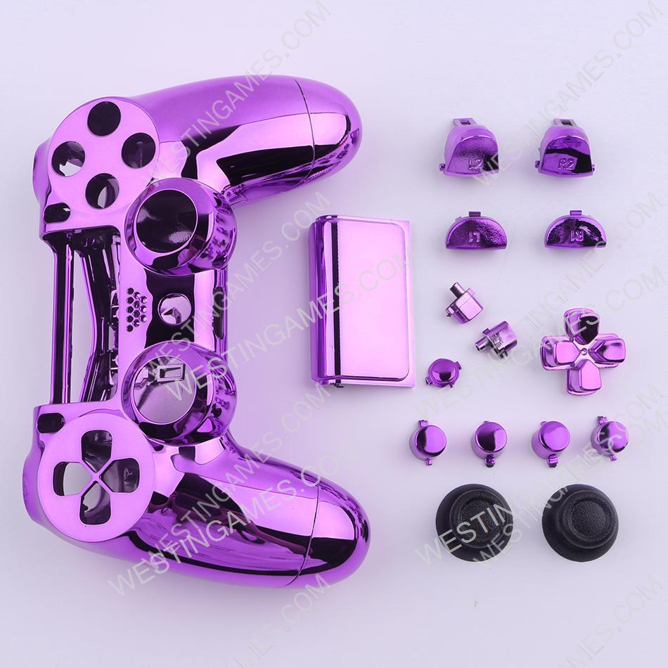This chrome purple replacement controller shell set for the Ps4 Slim controller comes with everything you need to modify your favourite controller shell into a gleaming chrome purple controller.